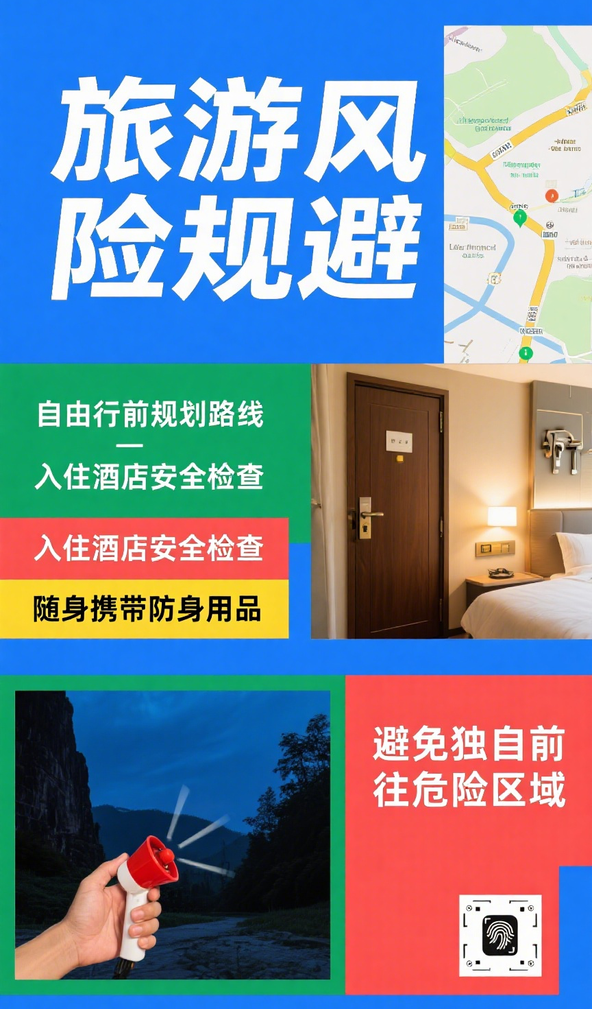 自由行前规划路线,查询目的地天气与治安情况,避开自然灾害高发区(如山区暴雨、沿海台风);入住酒店检查门窗锁具,随身携带防身用品(如警报器),不独自前往偏僻景区或深夜外出。